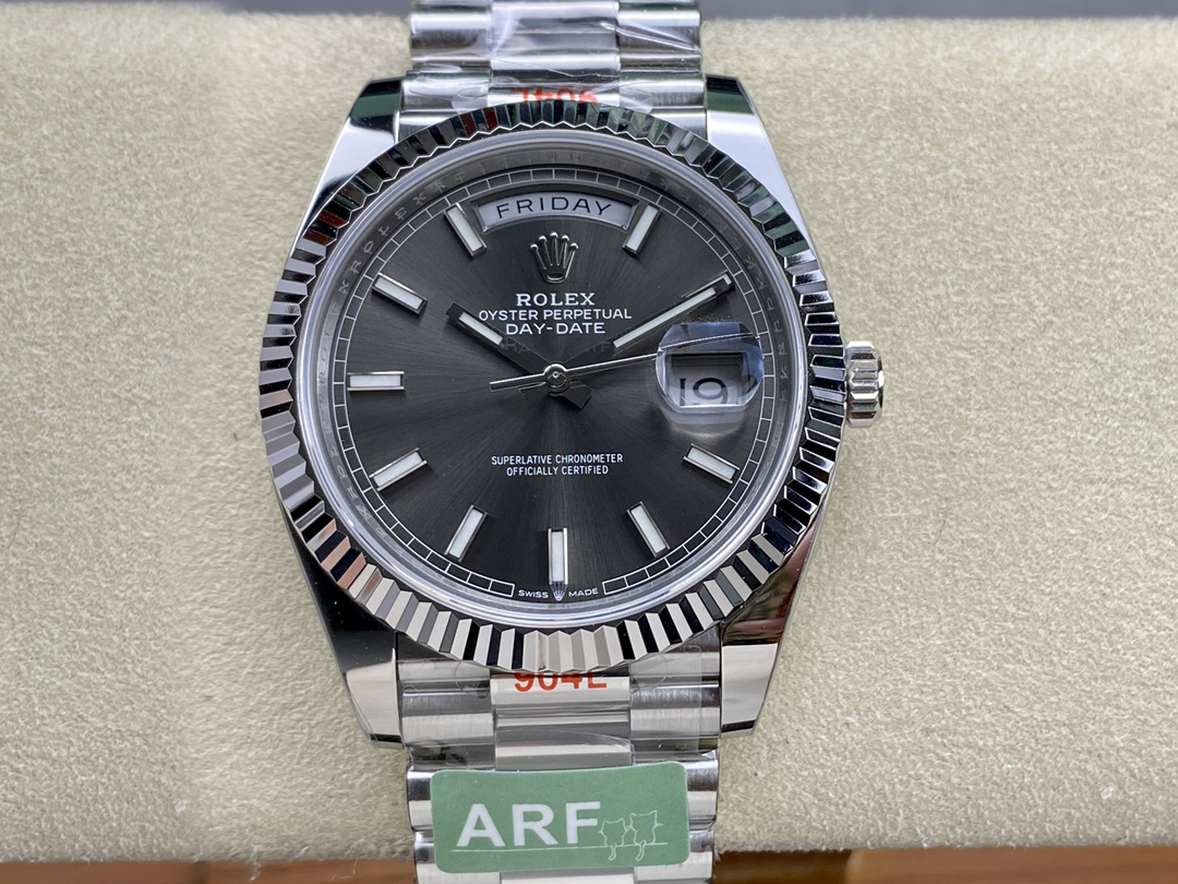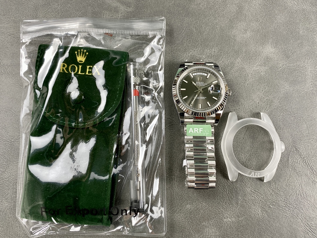 & Free ShippingARF 劳力士DD双历星期日志型40mm进阶款它来了!DD作为劳粉必备清单中的经典,已经完美复刻出来了!使用3255一体机芯,与原版一致。并非使用市场通货2834机芯。历时多日,细节上无论从壳的厚度、面板条丁或T钻或罗马刻度、针的弧度及毛刺、钢带散件的尺寸大小、电镀颜色的调整,反复无数次的修改。只为呈现出来真正的复刻!还原1:1的神韵。 此次修正的细节如下: 1)尺寸厚度为12.2。与正品厚度一致(附带细节图) 2)正品钻钉比较细长,市场普遍比较粗,已修好和正品一致的尺寸,包括面部结构与底部结构一致(附带细节图) 3)电镀方面:正品颜色并非1N16,2N18这些标准颜色,而是寄去电镀厂对比色差,单独调出来对应正品颜色。为了防止掉色问题,并后期做了纳米保护层。从而增加了颜色持久性!(掉色非人为因素无条件换新),并附带细节图 4)壳底部4个角位贵金属标志市场版本通常是激光镭射,字印虽然清晰但是一眼假。ARF采用先压型后腐蚀的工艺,尽量与正品做到一致!(附带细节图) 承诺所有配件均与正品通用!若不实,支持使用中或未使用无条件退款退货。这一点是市场目前其他工厂无法做到的。后续将会有细节图对比。眼见为实。欢迎各位小伙伴测评!若有不足之处,请提出您的建议,虚心请教。ARF将与您一起进步!