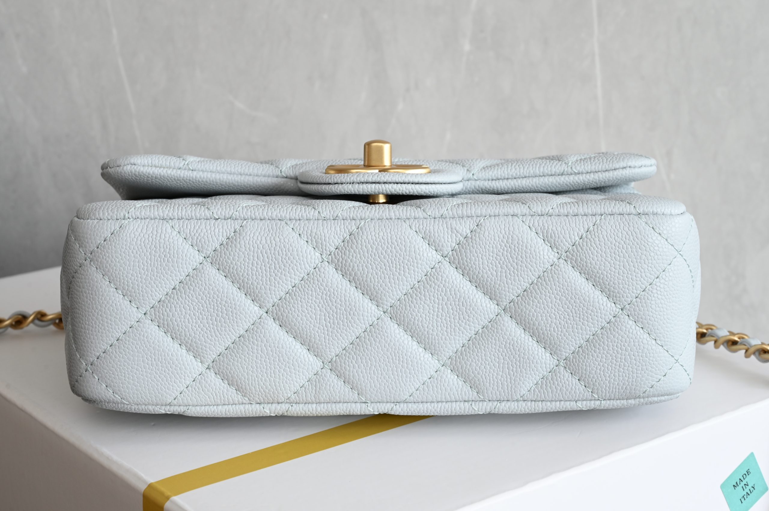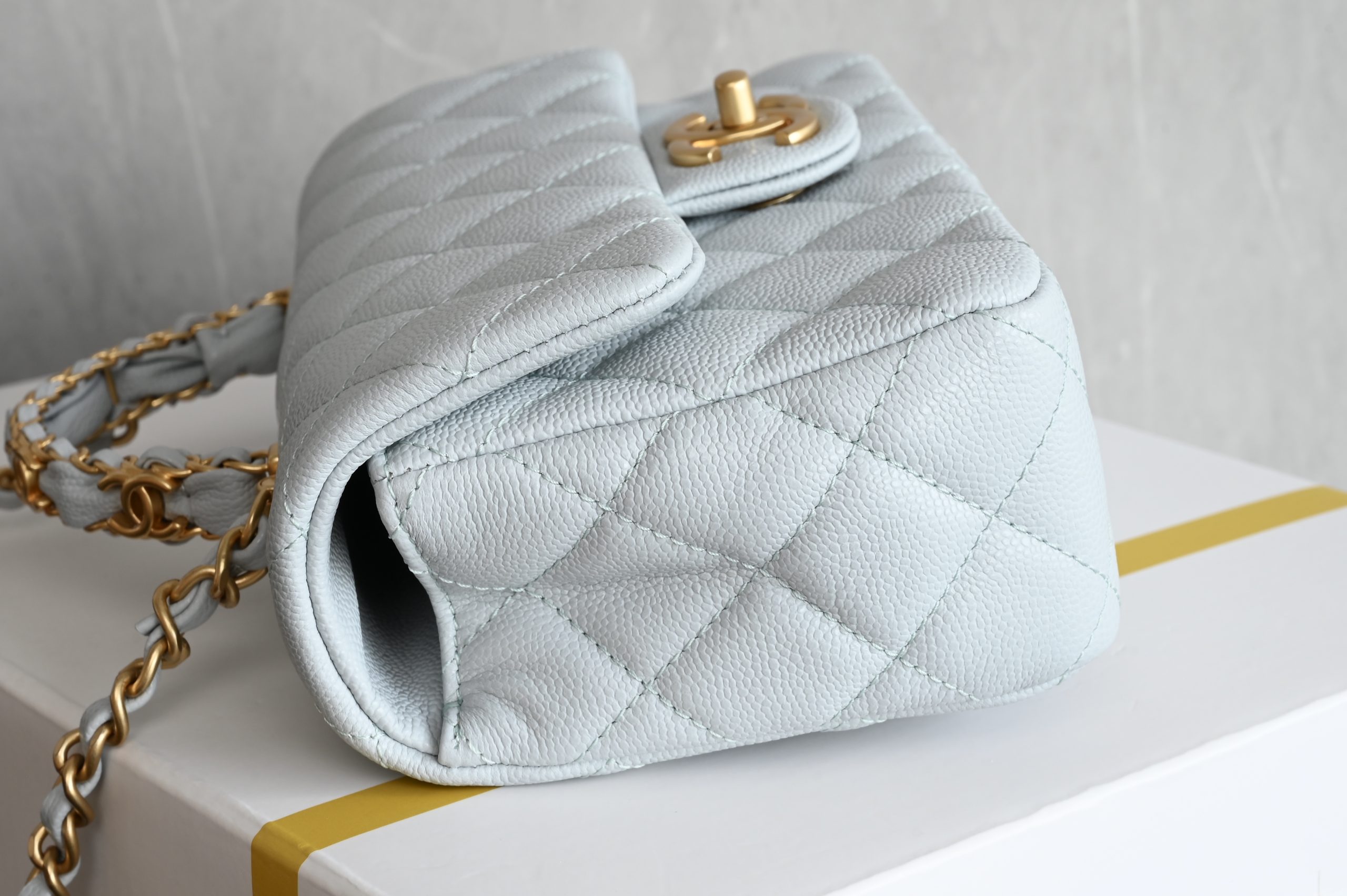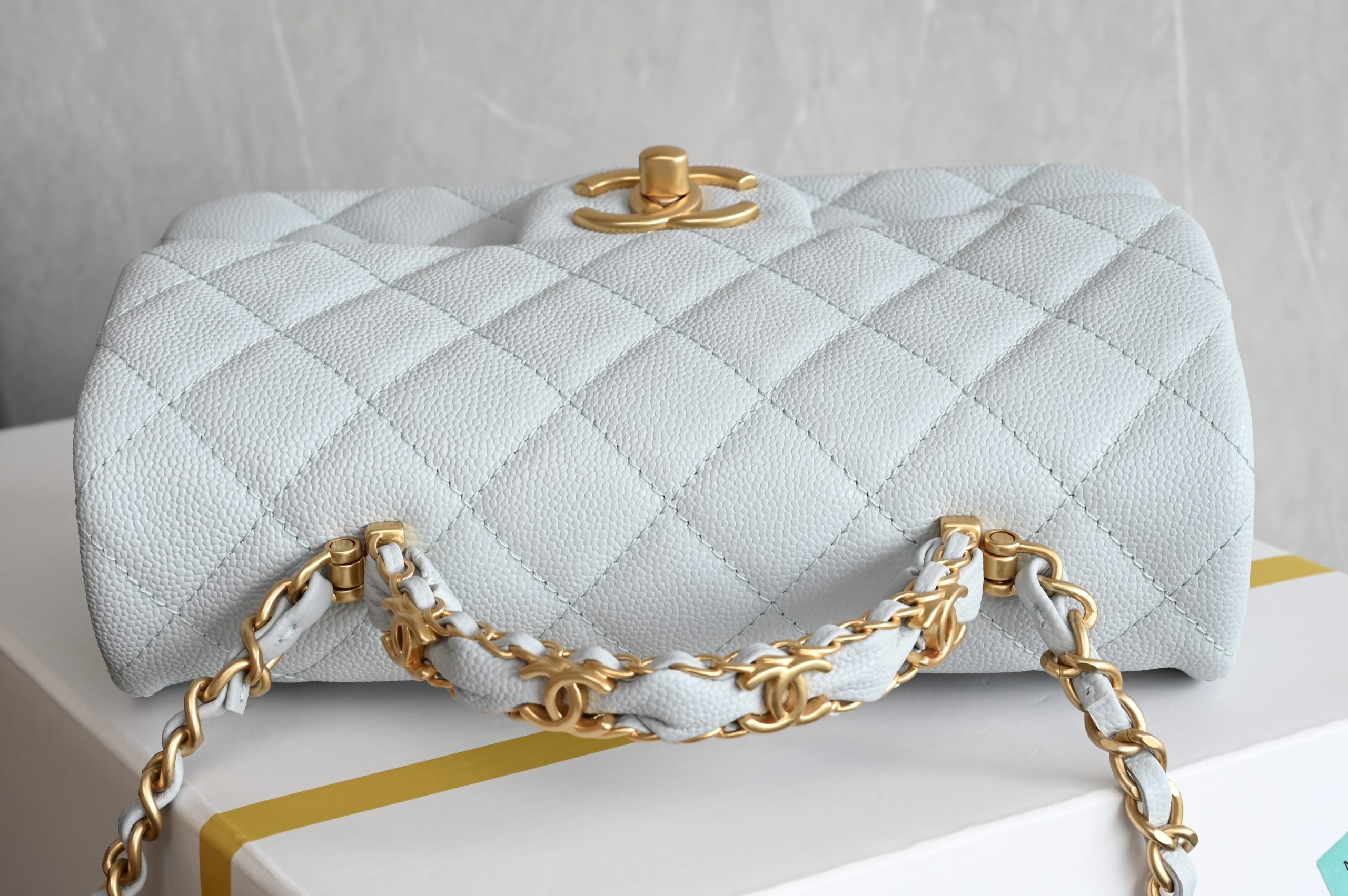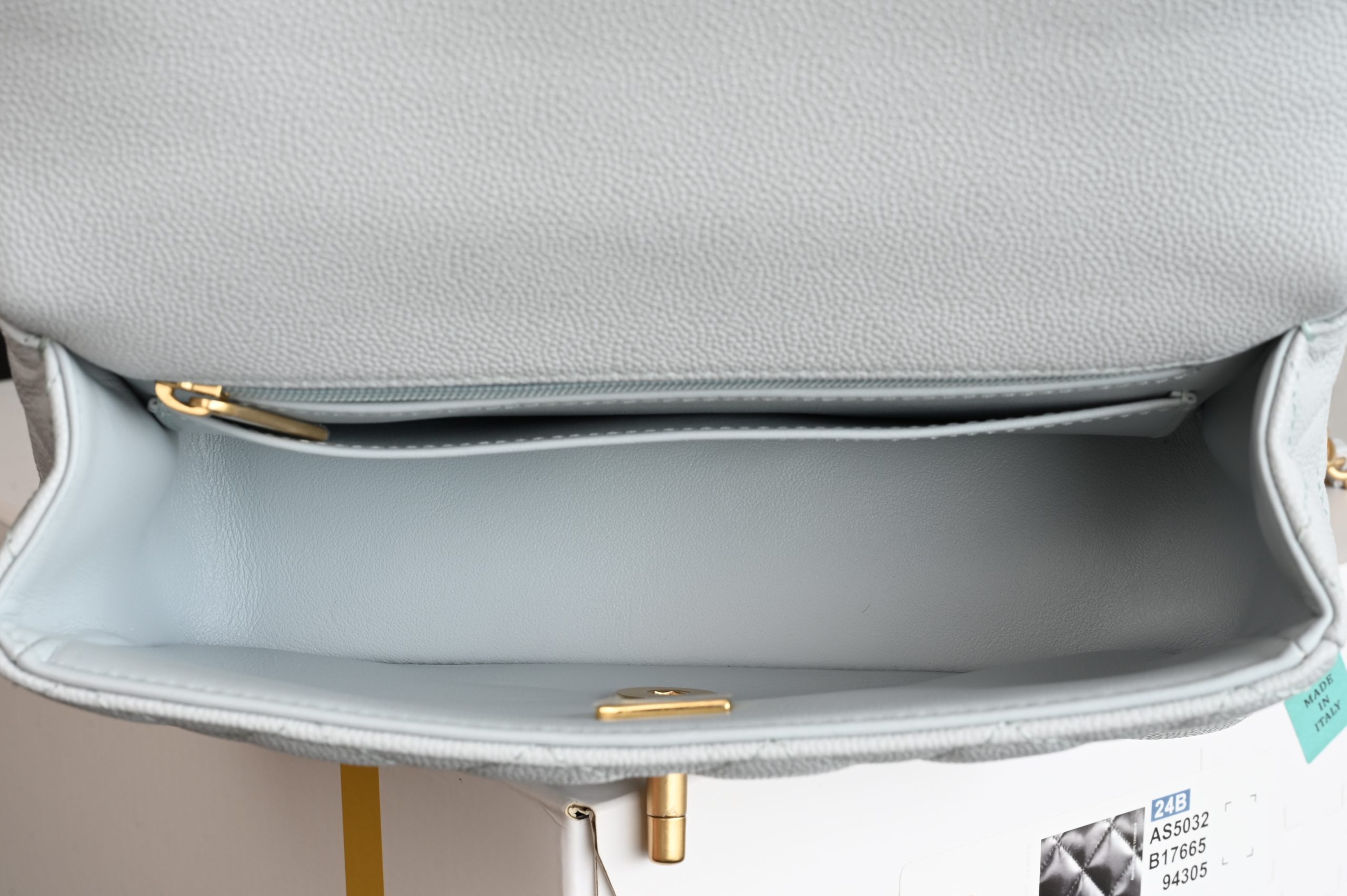 Lychee grain leather double C handle large mini in baby blue